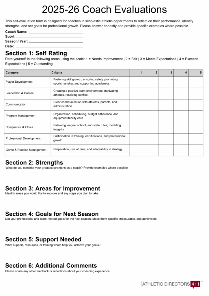 Evaluating coaches is one of the most important responsibilities of an athletic director. These assessments not only help maintain the quality and integrity of a school’s athletic program, but they ensure coaches receive the support they need to grow professionally as well. A well-structured evaluation process benefits the whole of the athletic department by reinforcing expectations and fostering accountability, driving program improvement as a whole.