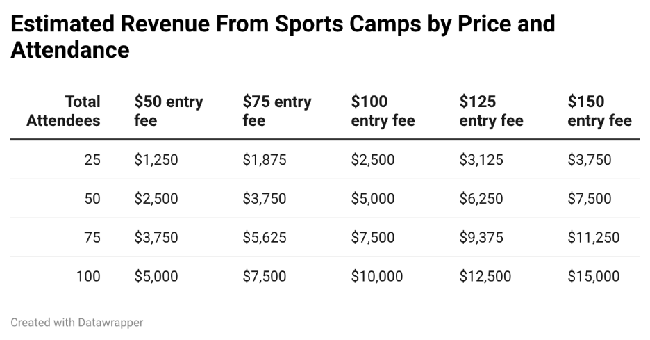 First, sports camps can be one of the easiest ways to fundraise for your department. You most likely already have access to the facilities and equipment needed, as well as coaches and student-athletes who can lead the camp, so registration fees cover operational costs and can generate additional revenue for travel, uniforms, equipment, or facility upgrades. Depending on how long the camp is, expenses needed, and price points chosen, you have the potential to generate a large revenue.